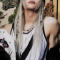 "giant" is stray kids' second full japanese album. the concept was very dark, reminiscent of their original style and styles like "venom" from oddinary. felix's main concept outfit consists of his long blonde hair in a ponytail, dark makeup, a leather jacket, and many pieces of gothic metal jewelry.
