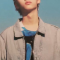 "hollow" is stray kids' fourth japanese extended play. felix's main outfit consists of his (now black) curled hair, a earthy muted sage green two piece outfit, and pink contacts. his second outfit is a pale green button up shirt with a black and yellow tie, a wool cardigan over the top and green contacts.