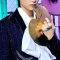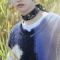 "the sound" is stray kids' third japanese album. felix's hair is still black, but this time it has ivory streaks on one side. his main outfit is a glittery dark indigo suit jacket, a sleeveless white shirt with a large white bow scarf, and leather pants. his second outfit is a black and beige gingham short suit with a wide black belt and pearl chain.