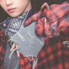 "clé 3: levanter" is the third album in the "clé" trilogy. felix's hair is now a light magenta-lavender color. his main outfit is a multi-colored wool sweater with blue, black, and white on it (album colors) paired with a black and white scarf/choker. this look is another one of my favorites.