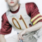 "social path/super bowl" was stray kids' japanese ep. my personal favorite outfit of felix's was the "super bowl" concept outfit, hes seen with his iconic blonde hair back, tied in a half-up half-down style, wearing a red with yellow striped mesh football jersey and a khaki distressed vest with the numbers 01 in red and yellow lettering, and light distressed khaki pants to match the vest.
